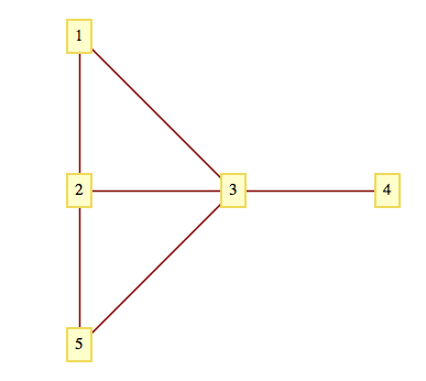 The degrees of vertices 1 through 5 in Figure 9.1.33 are 2, 3, 4, 1, and 2, respectively. The degree sequence of the graph is \((4,3,2,2,1)\text{.}\)